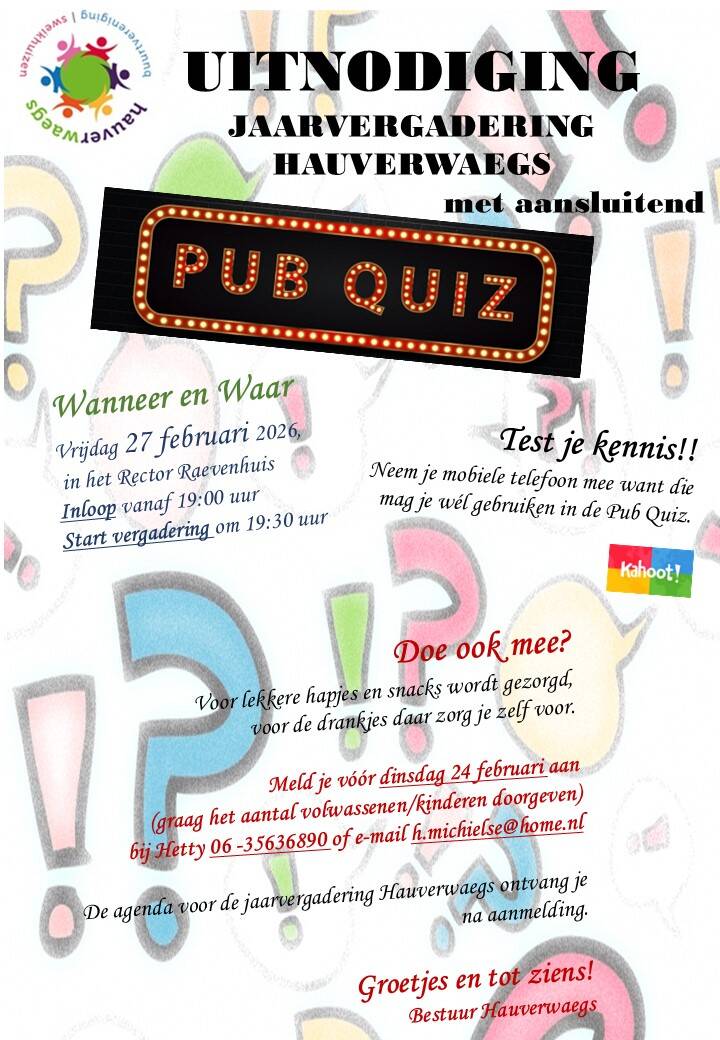 Uitnodiging Jaarvergadering & Pub Quiz op vrijdag 27 februari